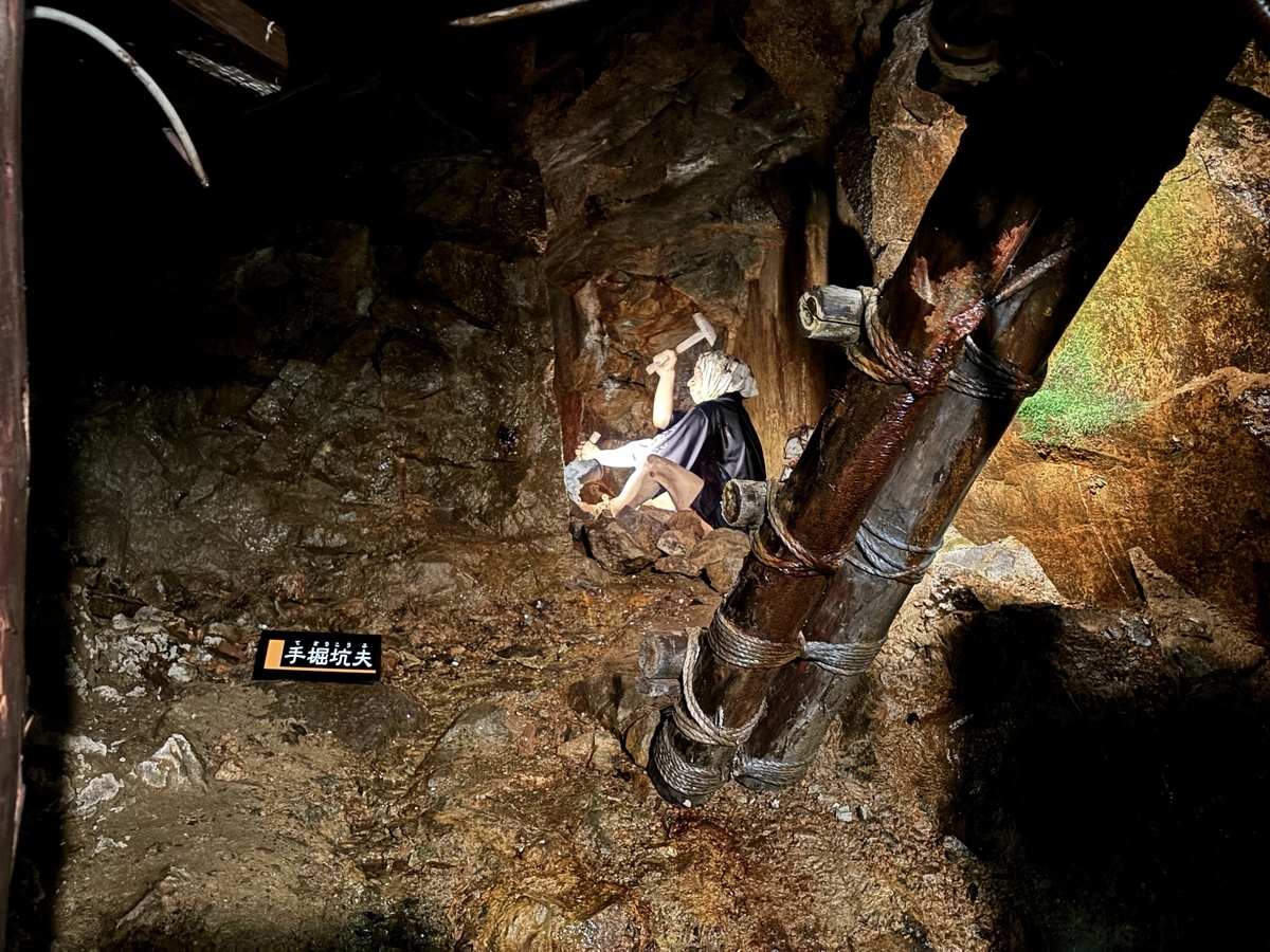 やはり昔の日本人の体格は小さかったのかな‥と思わせるほど、坑道の天井も低く、身長173cmの夫は3回ぐらい頭と肩をぶつけていました。