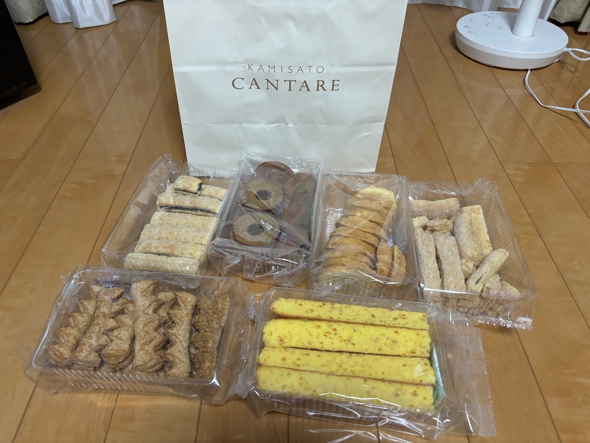 アウトレット商品はバウムクーヘンとか焼き菓子とかパイなどの端っこですが、自家消費する分には、とてもお得です。1パックが300円台から500円ぐらいです。